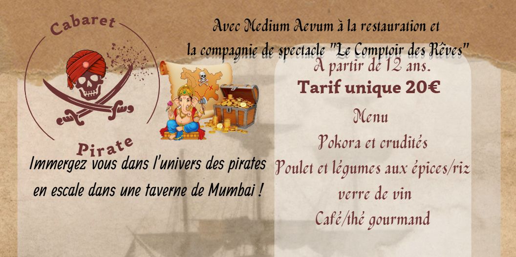 Attention : le spectacle comporte cette année un humour de pirates non adapté aux plus jeunes. En accord avec la compagnie de spectacle, nous avons choisi de déconseiller la soirée aux moins de 12 ans.